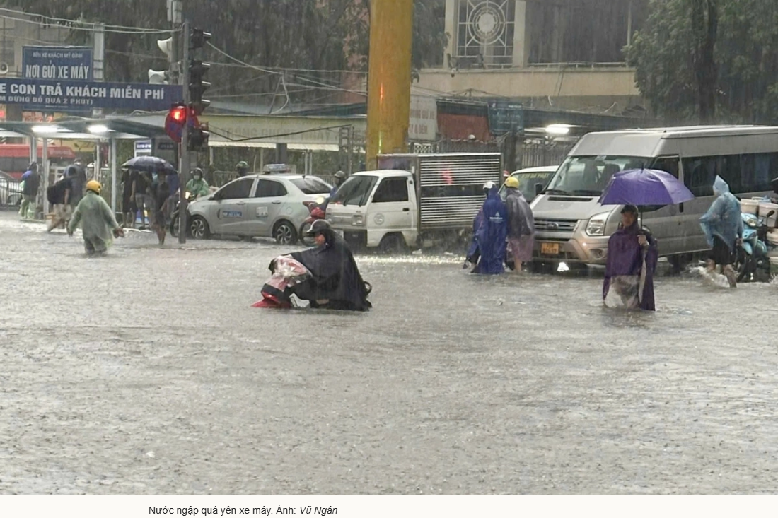 Sáng 7h, nhiều khu vực ở Hà Nội đã phải đối mặt với tình trạng ngập lụt nghiêm trọng.