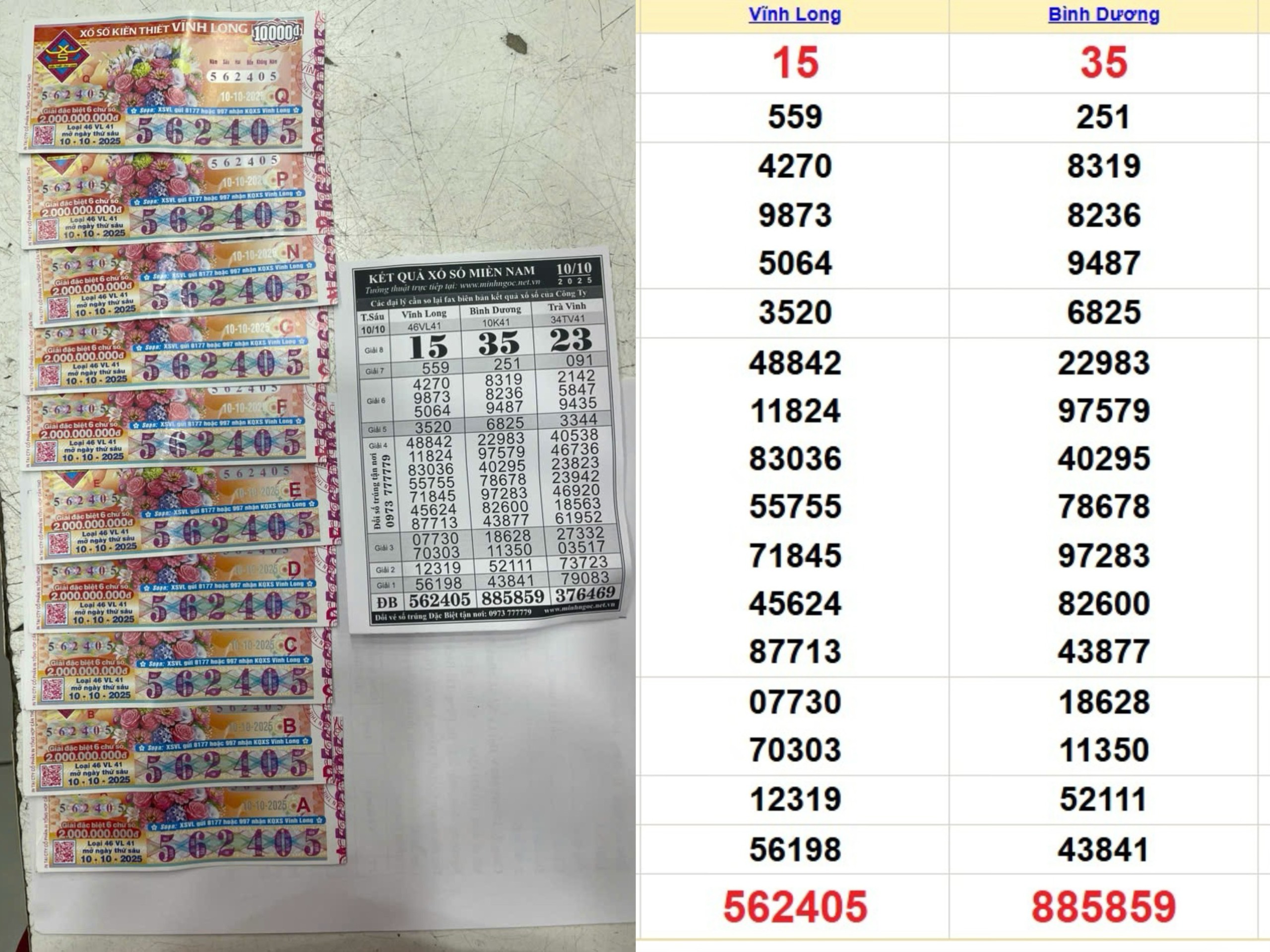 Được biết, 10 tờ vé số may mắn mang dãy số 562405, thuộc kỳ quay thưởng của đài Vĩnh Long trong khuôn khổ Xổ số miền Nam ngày 10 tháng 10, đã mang lại cho cặp vợ chồng ở TP.HCM số tiền 20 tỷ đồng (chưa trừ thuế). Đại diện đại lý cho biết, cặp đôi này mua vé từ một người bán dạo và đã nhanh chóng đến đại lý đổi thưởng chỉ sau một thời gian ngắn kể từ khi có kết quả. Toàn bộ số tiền lớn được chuyển khoản an toàn theo yêu cầu bảo mật tuyệt đối của khách hàng, nhằm đảm bảo an toàn cá nhân. Dù yêu cầu giữ kín danh tính, sự mừng rỡ và hạnh phúc không thể che giấu trên khuôn mặt của họ. Đại lý cũng tiết lộ đây không phải lần đầu tiên họ chứng kiến những khoảnh khắc vỡ òa như vậy, khi thường xuyên tiếp nhận đổi thưởng các giải lớn cho khách hàng.