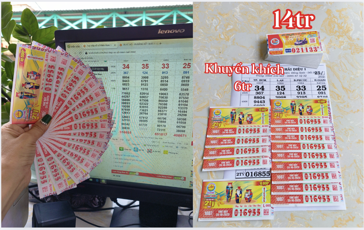 Chiều 25 tháng 10, niềm vui và cả sự tiếc nuối đã lan tỏa tại đại lý vé số Hải Diệu I ở Đồng Nai (trước đây thuộc Bình Phước), khi chị Trần Ngọc Diễm xác nhận vừa bán ra 14 tờ vé số trúng giải khuyến khích của xổ số TP.HCM. Sự việc diễn ra ngay sau khi kết quả xổ số miền Nam (XSMN) được công bố, mang lại tổng cộng 84 triệu đồng tiền thưởng cho khách hàng may mắn.