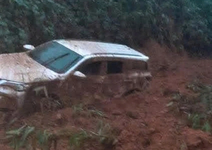 Sạt lở đất vùi lấp ôtô, hai người thoát nạn
