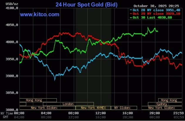 Thị trường vàng thế giới vừa trải qua một phiên giao dịch đầy kịch tính vào ngày 30/10, khi giá vàng giao ngay chốt phiên tăng vọt 94 USD, đạt mức 4.023 USD. Đà tăng này không dừng lại mà tiếp tục kéo dài sang sáng hôm sau, đưa giá vàng lên 4.030 USD, đánh dấu sự bứt phá ấn tượng của kim loại quý.