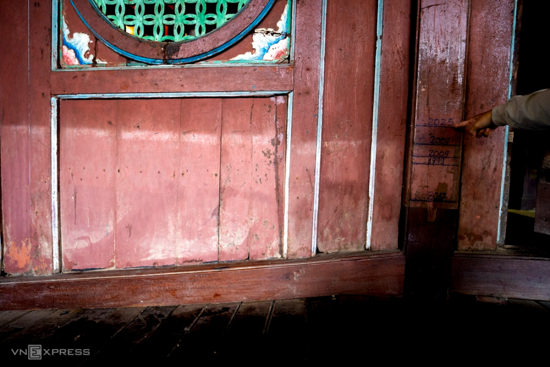 Ngay trước cổng Chùa Cầu, biểu tượng của Hội An, mốc lũ năm 2025 đã được nhân viên soát vé đánh dấu lên vách gỗ. Đây là mức nước cao nhất được ghi nhận kể từ trận lụt năm 1999, một minh chứng sống động cho sự tàn phá của thiên nhiên.