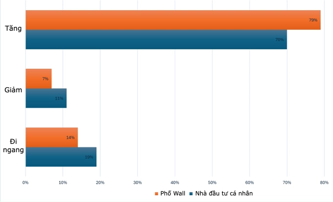 Trước diễn biến tích cực này, khảo sát mới nhất từ Kitco News đã ghi nhận sự lạc quan rõ rệt từ giới phân tích Phố Wall, đồng thời củng cố niềm tin vào đà tăng giá tiếp theo từ phía các nhà đầu tư cá nhân. Cụ thể, trong số 14 chuyên gia phân tích hàng đầu tham gia khảo sát, có tới 11 người (tương đương 79%) dự báo giá vàng sẽ tăng trong tuần này. Chỉ một chuyên gia duy nhất cho rằng giá sẽ giảm, trong khi hai nhà phân tích còn lại, chiếm 14%, dự đoán kim loại quý sẽ đi ngang.