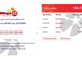 Kết quả xổ số Mega 6/45 Vietlott tối 22.10, một người trúng gần 134 tỉ đồng