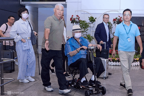 Vợ hoa hậu săn sóc Hồng Kim Bảo ở sân bay Tân Sơn Nhất